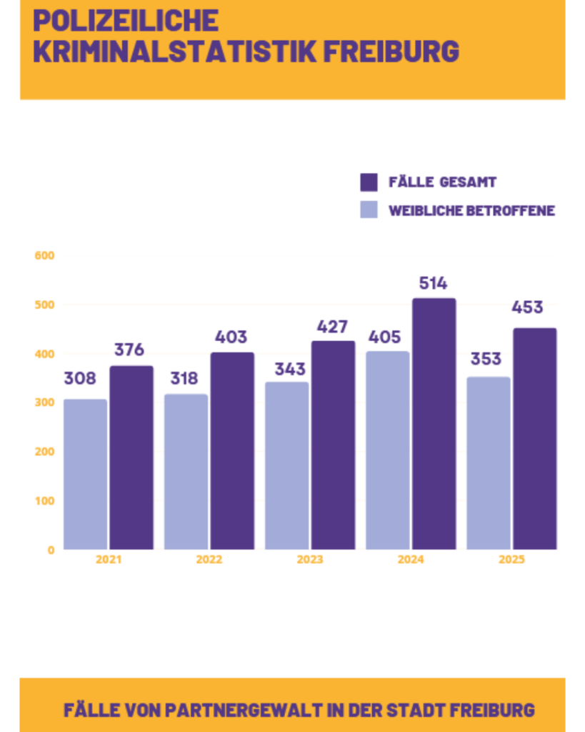 Für den Stadtkreis Freiburg wurde zudem die Polizeiliche Kriminalstatistik 2025 (PKS) veröffentlicht, in welcher auch die Fälle von Partnergewalt dargestellt werden. Erfreulicherweise gibt es einen leichten Rückgang zum Vorjahr, bislang ist jedoch kein Langzeittrend ersichtlich. Hier finden Sie die ausführlichen PKS-Zahlen.